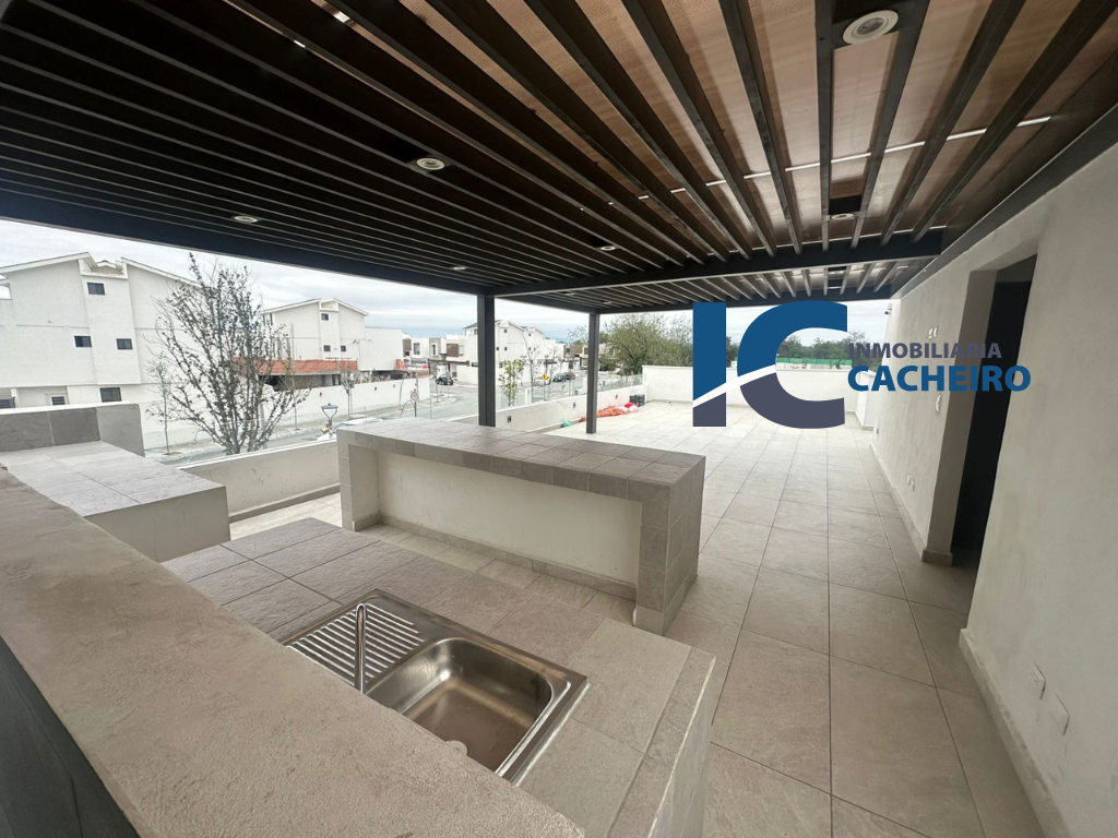 Equipamiento: Puerta de seguridad; Cocina integral con barra desayunador con cubierta de cuarzo y alacenas de alto brillo, parrilla, campana; Boiler y Closets de pared.